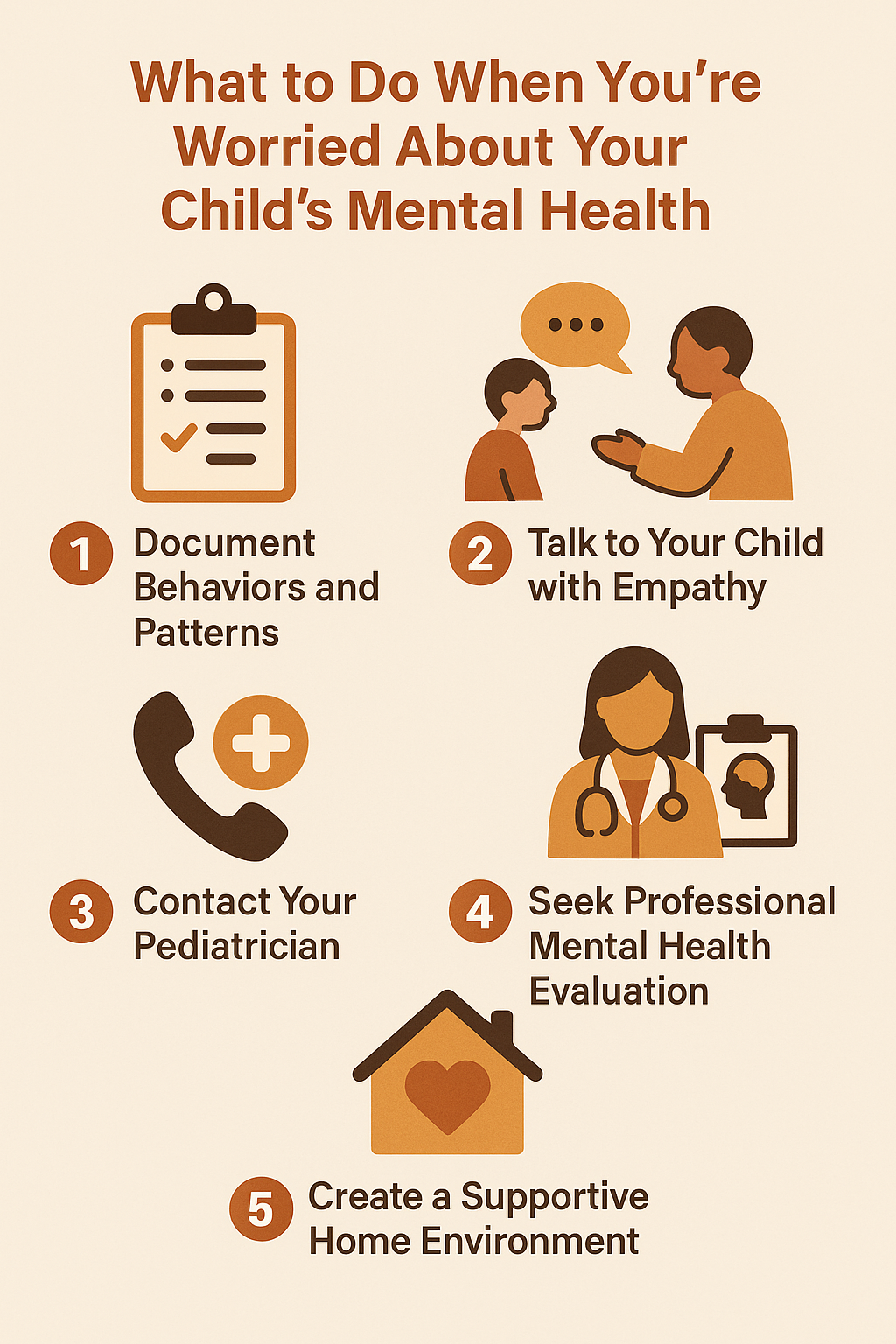 아이의 주치의에게 먼저 상담해보세요. 신체적 문제가 없는지 확인하고, 필요시 정신건강 전문가에게 의뢰를 받을 수 있습니다.