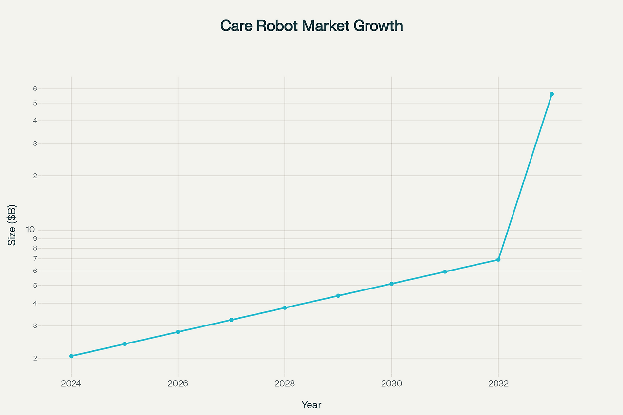 글로벌 의료 서비스 로봇 시장은 2024년 128억 달러에서 2034년까지 연평균 16.6%의 높은 성장률을 기록할 것으로 예측됩니다. 특히 간병 로봇 시장은 2024년 20.5억 달러에서 2033년 559억 달러로 폭발적인 성장이 예상되며, 이는 전 세계적인 고령화와 간호 인력 부족 문제가 주요 동력이 되고 있습니다.