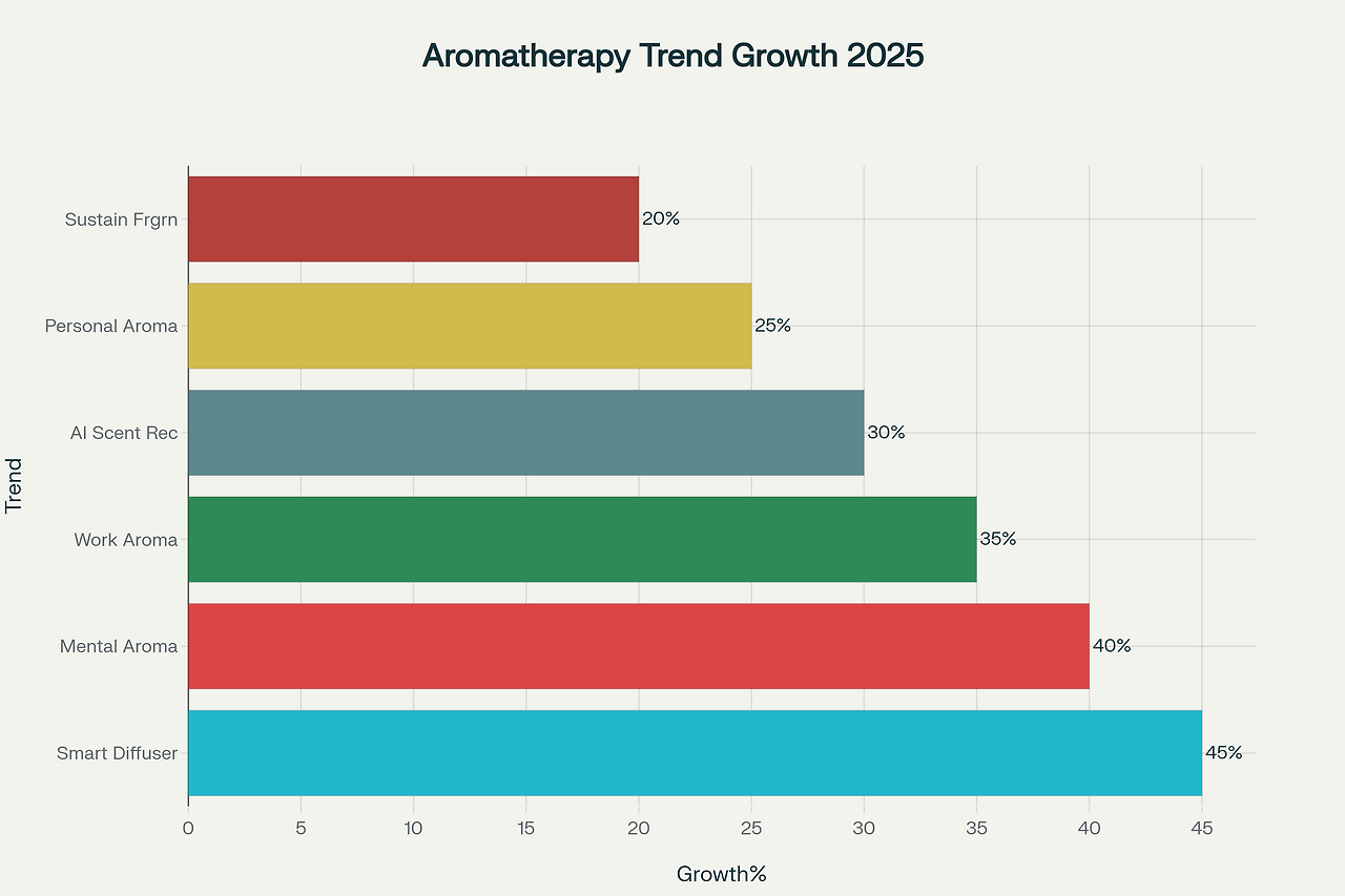 글로벌 아로마테라피 시장은 2025년 7조 달러를 넘어설 것으로 예측되며, 특히 다음 6가지 트렌드가 주목받고 있습니다: